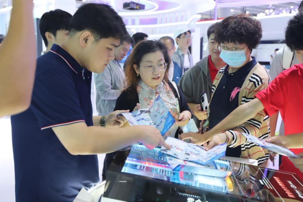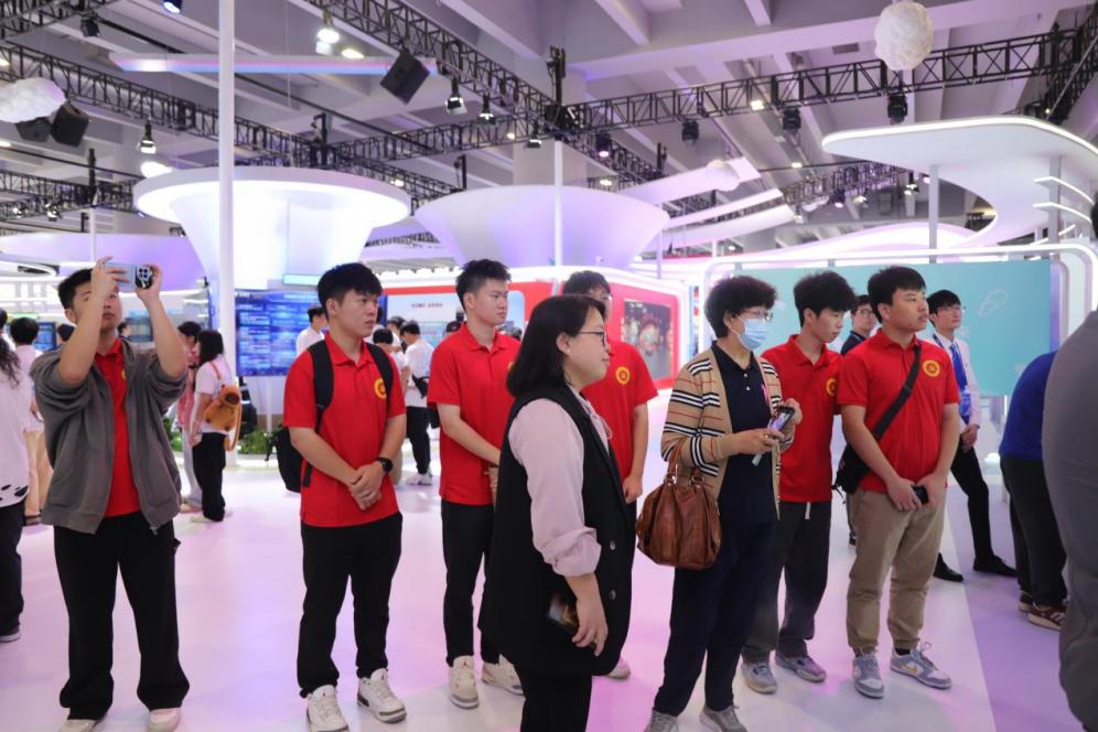 在会展中心的会场内,各种陈列的数字信息科技产品。为大家带来了一场绚丽多彩、震撼人心的视觉盛宴。各场馆围绕科技创新、产业数字化、视联科技、人工智能、卫星通信、智慧运营、绿色发展等话题展示数字科技新成果。