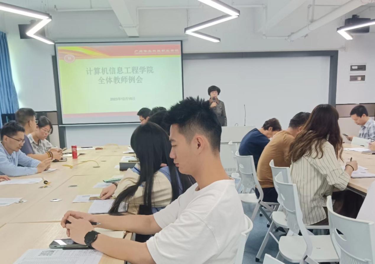 12月15日,计算机信息工程学院在西三501课室召开本学期期末工作部署会议。会议由院长王建华教授主持,本次学院全体教师大会主要内容有:成立学院意识形态工作领导小组、党总支意识形态工作责任制实施方案、2023-2024学年第二学期教材征订工作和学习加强教学管理过程中安全意识等。