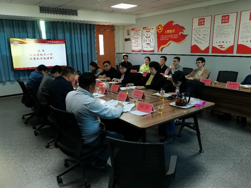 会议伊始,计算机学院参会人员向陈德清校长一行对个人情况、负责的工作进行了介绍,随后,计算机学院院长王建华通过“以匠心、致创新”高质量发展为主题,对学院情况、近年来教科研、学生竞赛取得的成绩、学院的特色亮点等作了简要介绍,并对学院未来努力的方向以及期望达到的目标作了展望,也提出了学院在高质量发展过程中急需解决的困难。