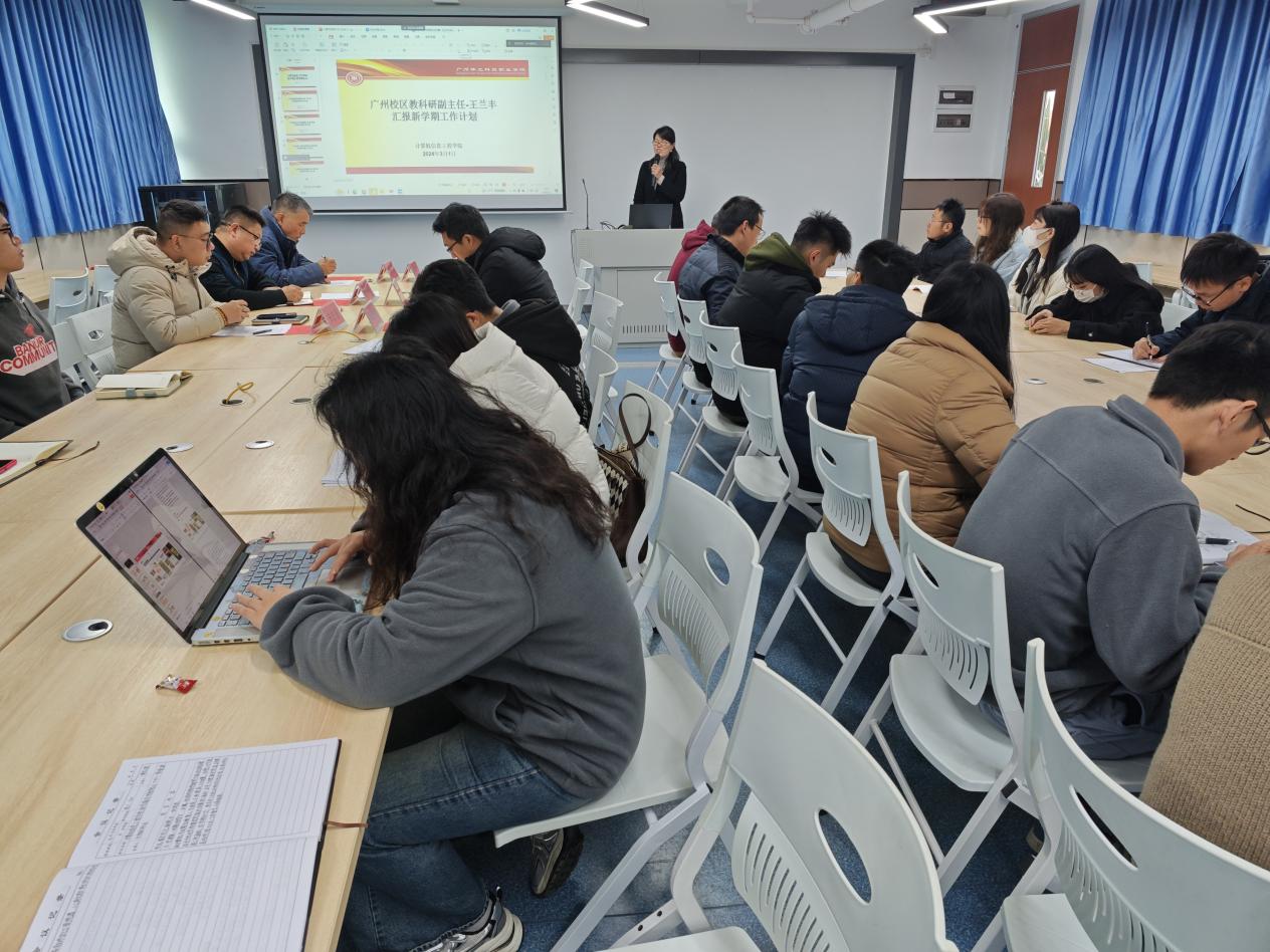 首先广州校区和云浮校区教学主任进行本学期开学初的工作进行汇报。对接下来的教学工作进行安排,首先学习学校下发的教学文件,强调重点关注课堂安全,严格课堂管理,关注学生心理健康;开展形式多样的教研活动,提升教师教学水平,提高教学质量;学生管理方面要加强党员队伍的建设、加强学风建设、校企合作就业方面要进行校企合作构建技术技能平台、积极“走出去、请进来”进行访企拓岗等。