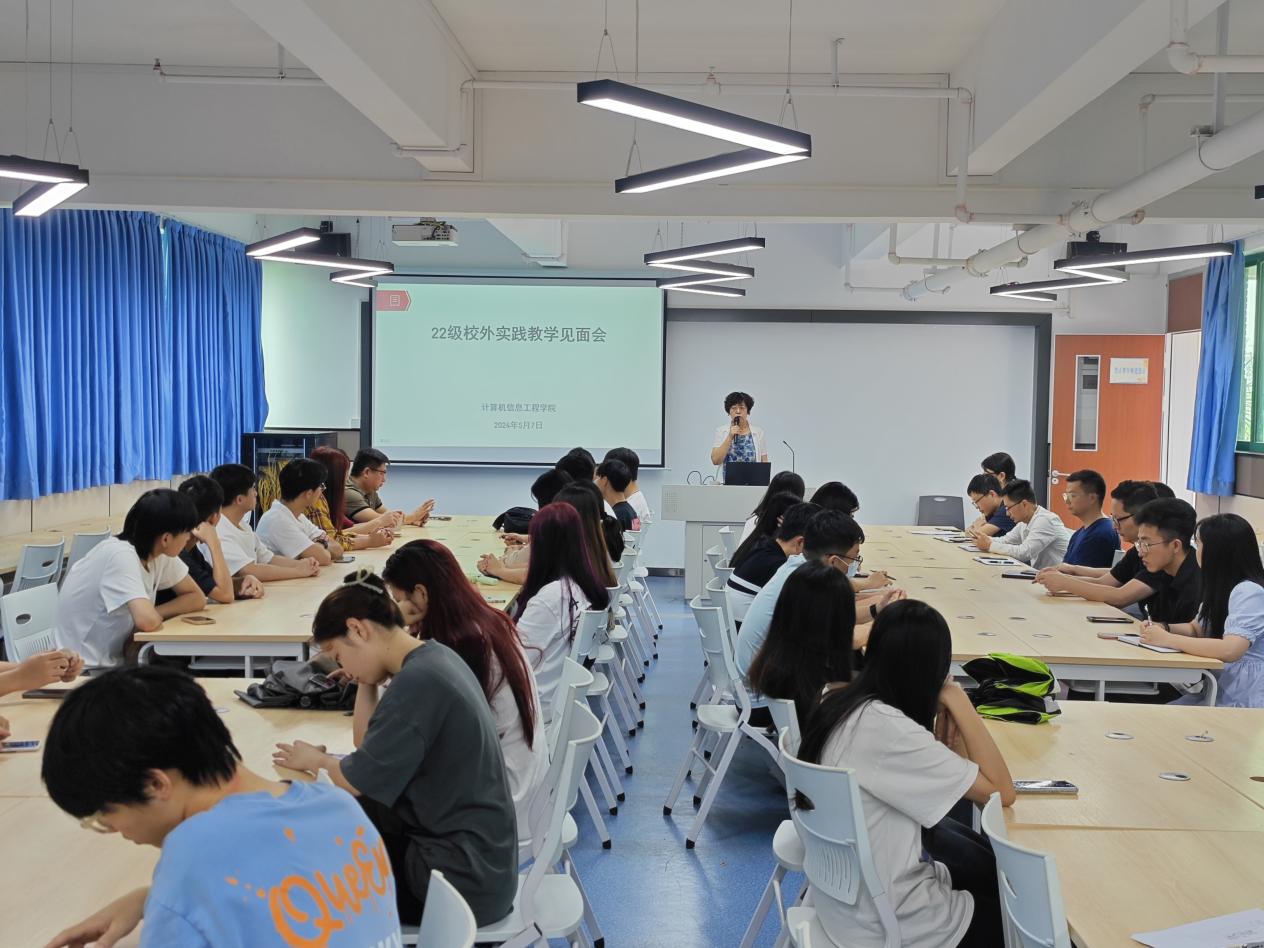 2024年5月8号,计算机信息工程学院在西三501召开了22级实践教学师生见面会,会议由学院院长王建华教授主持,党总支书记宋海泉,各班级实践教学指导老师和班级学生代表共50多人参加此次会议。