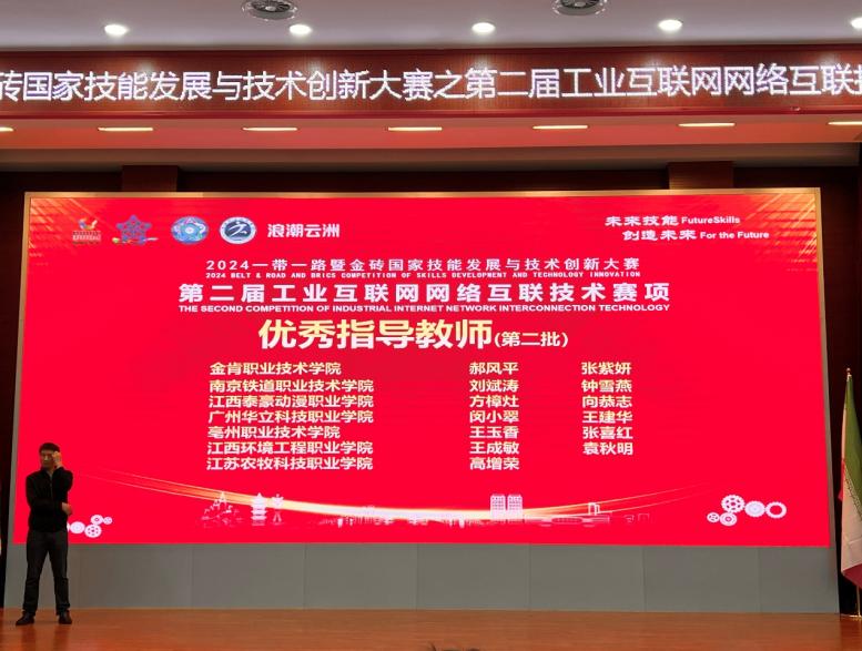 118日,教育部白名单大赛,2024一带一路暨金砖国家技能发展与技术创新大赛之第二届工业互联网网络互联技术赛项全国总决赛在安徽芜湖正式拉开帷幕来自全国21个省市65所院校115支队伍参加了此次比赛我院两支参赛队伍由王建华、闵小翠老师指导的陈佳钿,黄锦豪冯俊杰,苏彩茹参加比赛在为期三天的比赛中,与来自全国的115支学子同台竞技,经过4小时的激烈比拼,最终金奖9项,银奖18项,我院学生脱颖而出斩获全国总决赛银奖2这充分展现了我校学生术技能的实力和专业领域的水平,为学校争得了荣誉