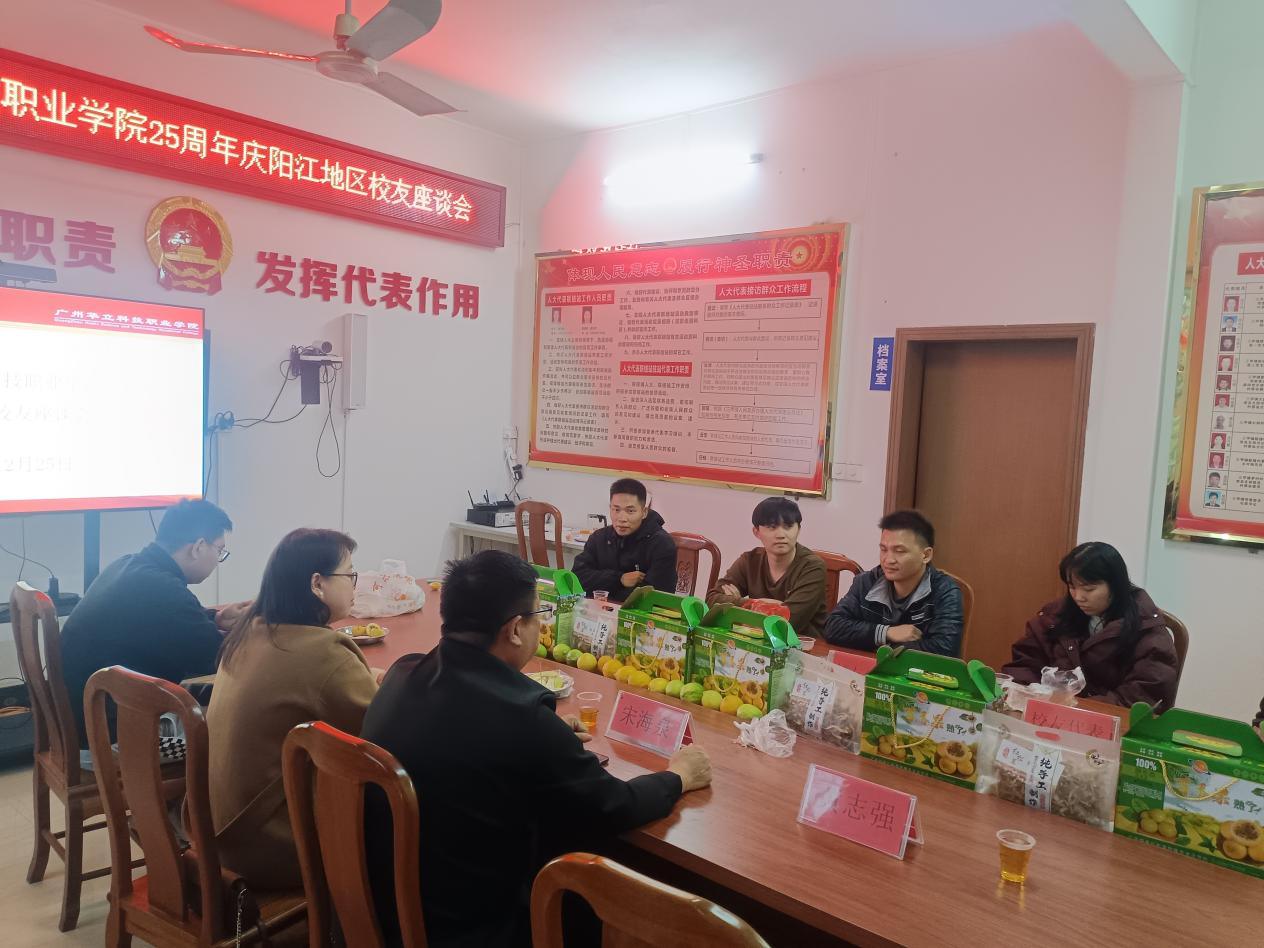 座谈会现场气氛热烈而温馨,校友们从阳江市各地赶来,都带着各自的故事与成就,期待在交流中碰撞出智慧的火花。首先宋书记向校友们介绍学校的发展与成就,我校现有广州和云浮两校区,在校生近 2.5 万,在多项排中都稳居广东省民办高职院校前三,人才培养质量和品牌影响力大幅提升,学生就业率连续五年超 97%,稳居全省前列。他表示,学校发展态势良好,期待校友为母校发展建言献策,常回母校交流合作,共续情谊。