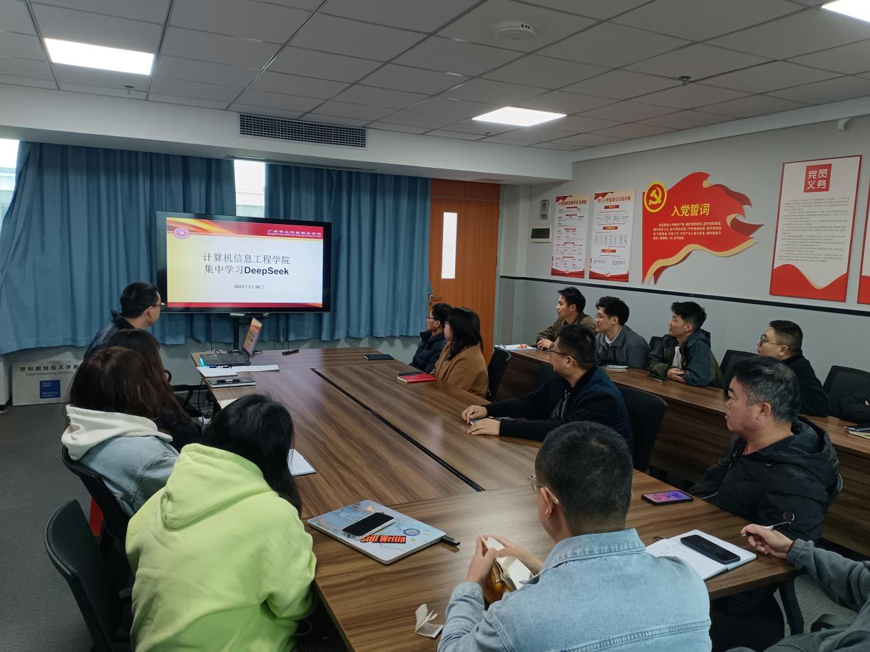 为提升我院教师AI+教育的教学能力和水平,强化教师数字化教学与科研水平,计算机信息工程学院于2月26日组织全体教师开展了DeepSeek大模型专题学习会。活动通过学习清华大学、浙江大学高校DeepSeek应用,结合教学、实际案例,将DeepSeek融入教育实践。