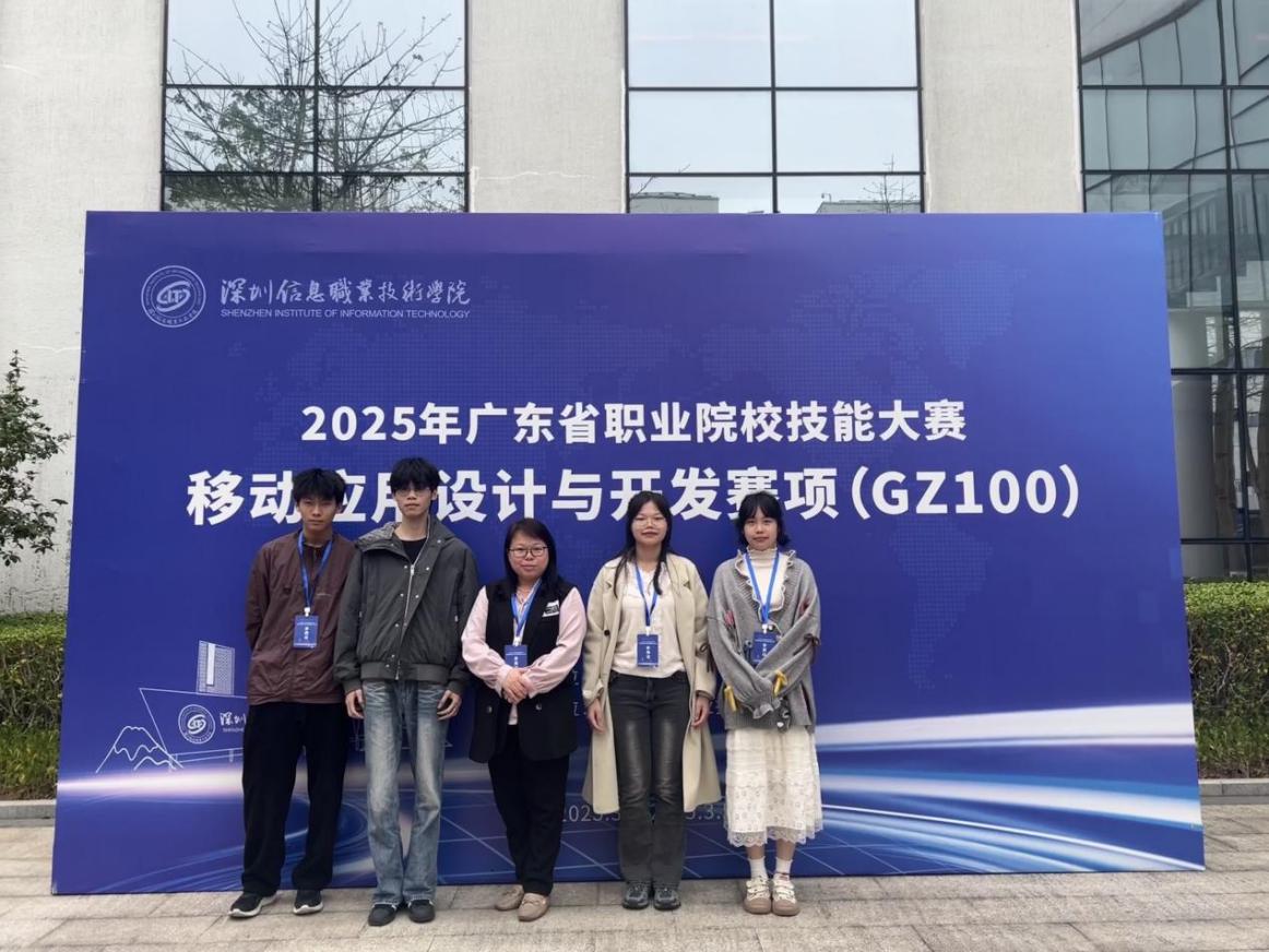 近日,广东省职业院校技能大赛(高职组)移动应用设计与开发赛项落下帷幕,在我校计算机信息工程学院王建华院长和闵小翠副院长的带领下,我校四名学生(冯俊杰、黄念念、冼乐瑶、丁凯锐)在比赛中凭借扎实的理论知识、过硬的实践操作能力,以及团队成员之间的默契配合,通过近六个小时的激烈角逐,最终在65支队伍中脱颖而出, 荣获“移动应用设计与开发”赛项三等奖。