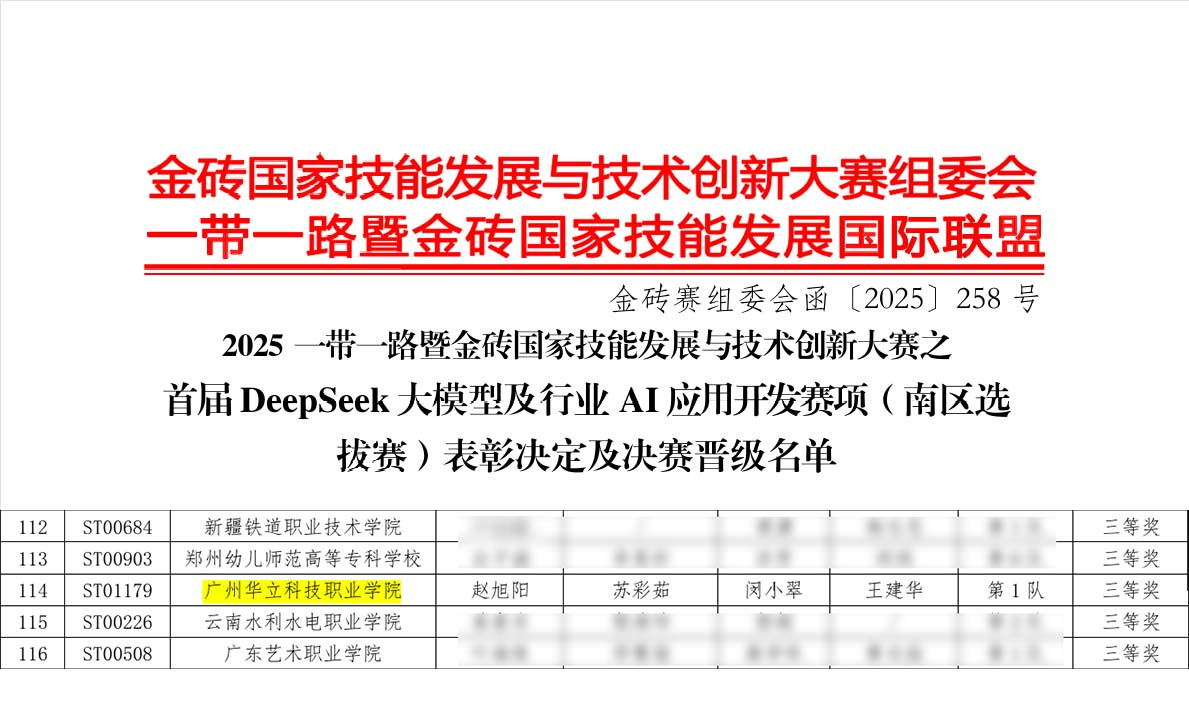 近日,2025一带一路暨金砖大赛之首届DeepSeek大模型及行业AI应用开发赛项(南区选拔赛)圆满收官。我校计算机信息工程学院赵旭阳、苏彩茹同学组成的代表队,在王建华院长与闵小翠副院长指导下,与甘肃、陕西等11省283支本专科参赛队同台竞技,最终凭借在大模型技术应用与行业AI解决方案设计中的出色表现,荣获三等奖。