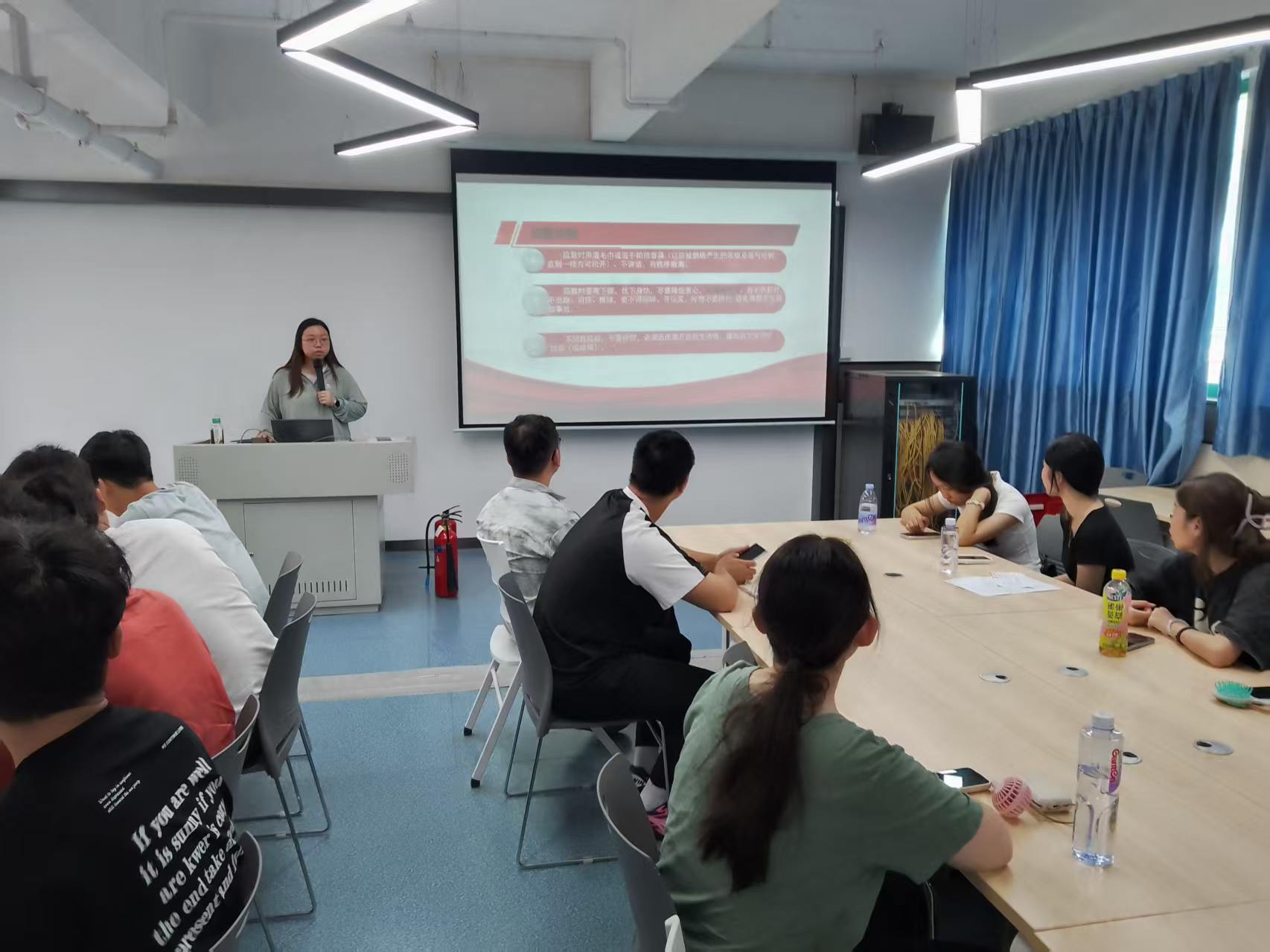 2025年9月5日上午,计算机信息工程学院举行了一场针对新入学的学子的实验室安全培训。本次培训分为五个部分,包括学习《高等学校实验室安全规范》、实验室安全管理规定、实验室卫生要求、突发事件防范和应对以及正确使用灭火器(实操)等内容,并在培训的最后组织了实验室准入考试。