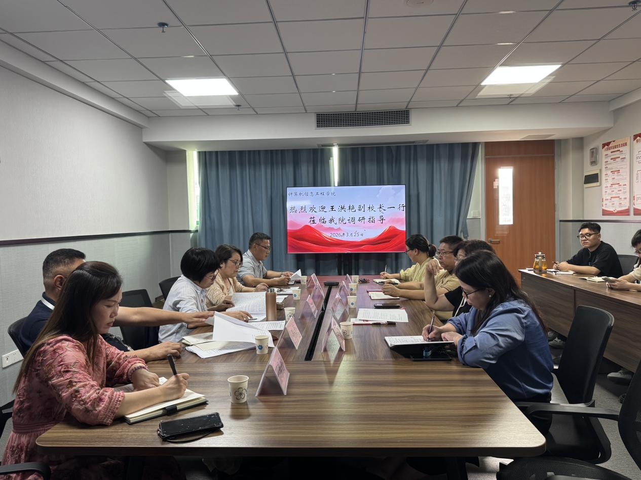 2026 年 3 月 25 日,副校长王洪艳一行莅临计算机信息工程学院,对学院专业群建设、学生竞赛、人才培养、党支部建设等工作开展专题调研指导。教务处处长孙丽英及教务处相关人员陪同调研。学院院长王建华、党总支书记宋海泉、副院长闵小翠、副院长苏越,以及各教研室负责人、教师代表参加调研座谈会。
