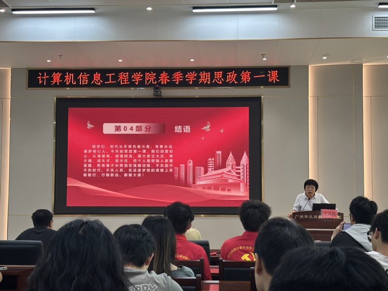 为深入学习贯彻习近平总书记关于青年工作的重要思想,引导广大青年坚定理想信念、勇担时代使命,3月25日下午,在图书馆104会议室,学校党委副书记、副校长王洪艳以“把青春播撒在民族复兴的征程上”为主题,为计算机信息工程学院师生带来一堂主题鲜明、内涵丰富的思政第一课。