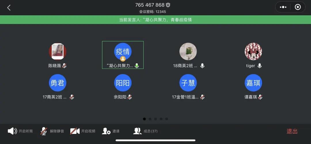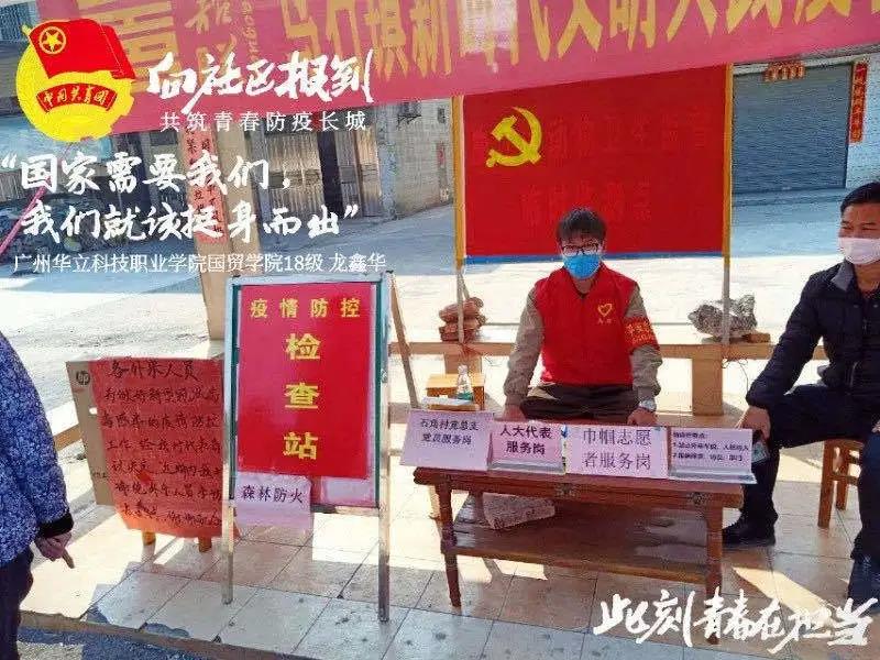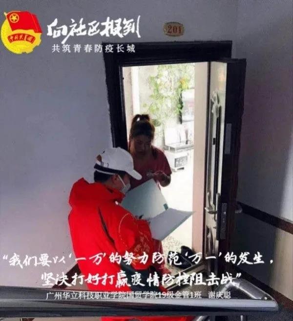 然后也表扬了在疫情期间献出自己的一份力量的国贸学院学子,18级商英1班龙鑫华同学和19级金管1班谢庆聪同学在社区当保障员,他们都在用自己的行动,积极响应国家的号召,主动投身抗击疫情狙击战中。