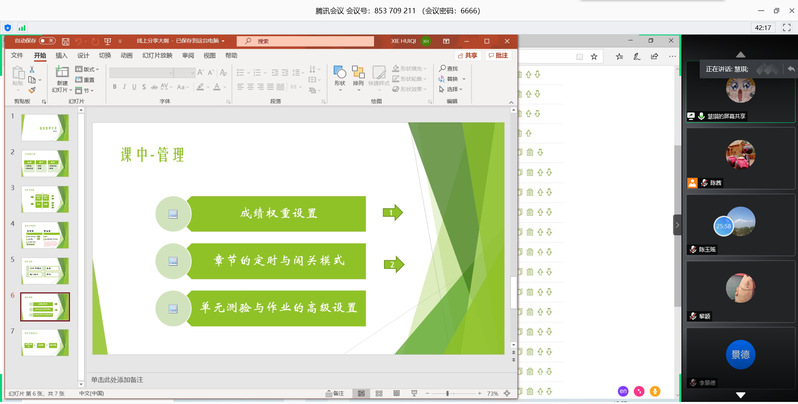 5月22日下午3:30,国际经济与外语学院召开网络教学和全院工作会议,陈茜教学主任通过网络会议召集国贸学院全体教师、系主任参加会议,马林院长还特地邀请了教务处林处长代表学校参加了此次会议,会议由陈茜教学主任主持。这次会议的主题是:总结交流经验,提高网络教学质量,互相学习,取长补短,推进我院网络教学工作上水平,上台阶,为今后网络教学常态化奠定基础。