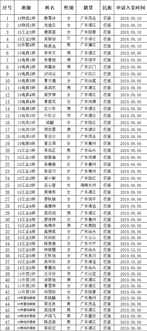 根据校共青团委员会下发《华立职院团字〔2020〕2号关于做好2019-2020学年度第二次“团推优”的通知》,结合学院实际,我院团总支于2020年5月10日-11日开展2019-2020学年度第二次“团推优”的工作。经个人申请,由各班团支部通过团员大会推选,管理学院团总支审核,校团委审批。我学院拟将赖雪冰等48位同志为2019-2020学年度第二次团推优对象,现将团推优对象的名单公示如下(具体名单见下表):