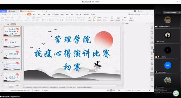 管理学院于2020年5月22日19:30在腾讯会议举办“展现抗疫风采,响亮青春色彩”为主题的线上演讲比赛活动。