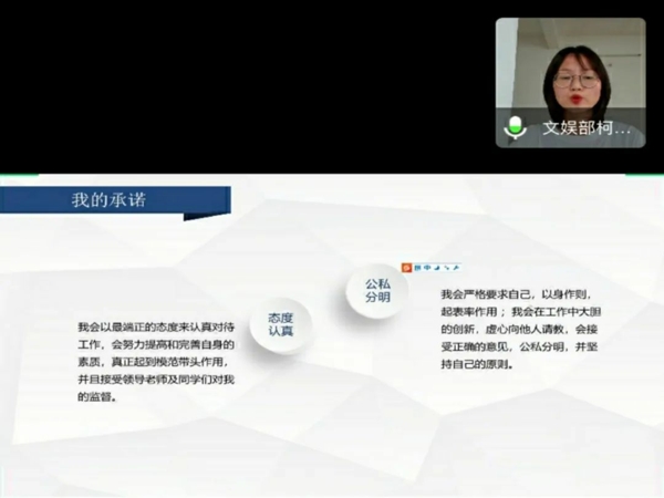 2020年5月22日下午3点30分,会计学院团总支学生会第十一届主席团换届竞选在腾讯会议召开,莅临本次会议的领导与嘉宾有:会计学院党总支杨玲书记、会计学院党总支纪检委员李月老师、会计学院学管副主任陈辉老师、会计学院校外教学副主任黄冠霖老师、会计学院团总支陈美欣书记、健康学院郑楚熙实习辅导员、会计学院余阳阳实习辅导员、会计学院麦晓彤实习辅导员、会计学院第九届主席团邓泳诗师姐、会计学院第九届主席团梁晓欣师姐、会计学院第九届主席团叶庆锋师兄、会计学院第九届主席团林嘉丰师兄、会计学院第九届文体部部长邓欢婷师姐以及会计学院第十届团总支学生会干部。