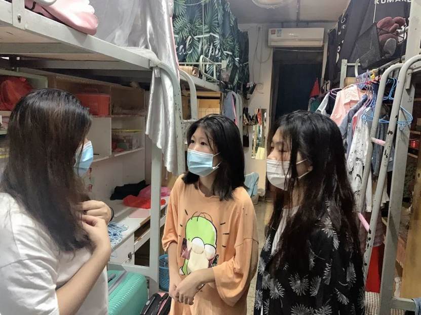 我院辅导员于当晚深入学生宿舍,走访看望返校复学的同学们。走访看望过程中详细了解同学们返校后的学习、生活状况以及遇到的困难和问题。对返校同学表达亲切的关怀和慰问,并叮嘱同学们要做好个人防护工作,时刻保持疫情防控意识,要合理安排时间、规律生活,以良好的精神面貌迎接即将到来的实习生活。