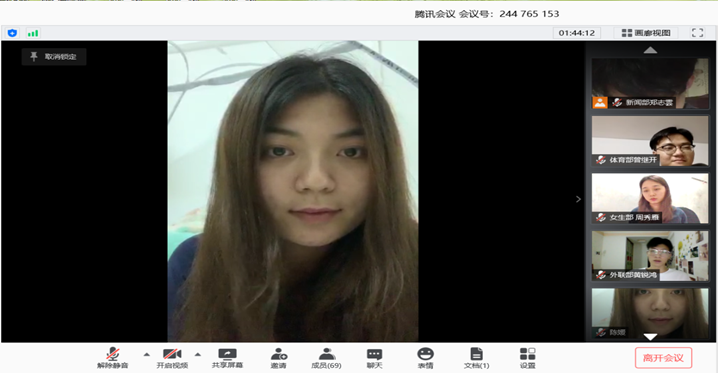 竞选者按照顺序依次打开摄像头进行演讲,他们分别就各自的基本信息、竞选职位、竞选原因及未来一年的工作规划进行了简短而精彩的演讲。在短短几分钟内给老师和主席团的成员留下了深刻的印象。
