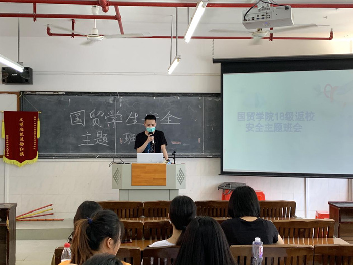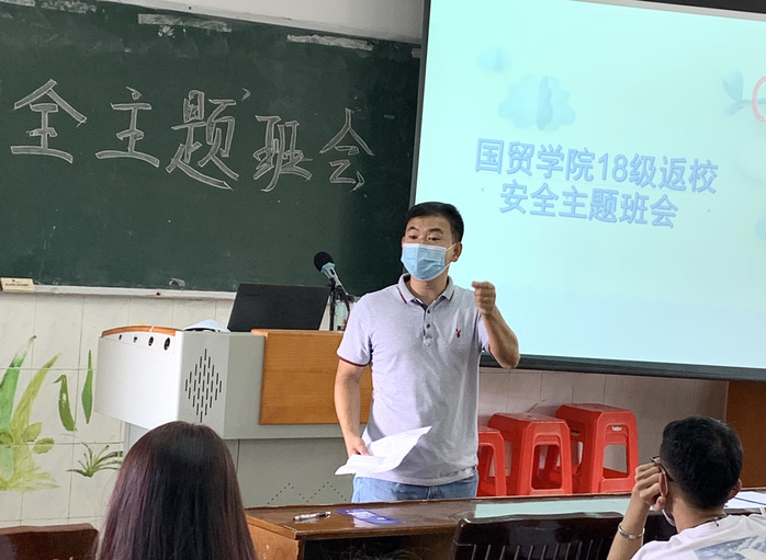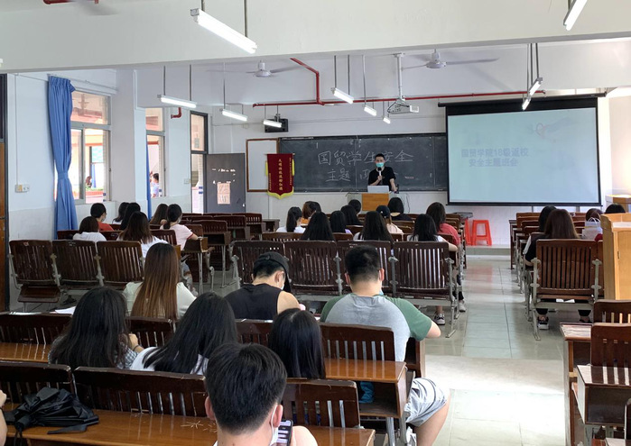 2020年7月6日在西一各班教室召开“18级返校安全主与安全离校班会”、“18级防诈骗主题班会”与“18级校外实习见面会”。本次会议由国贸学院学管主任刘伟鑫老师、18级辅导员陈权丰老师、18级各班校外指导老师主讲,18级全体学生出席。