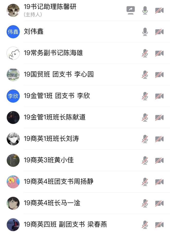 出席本次会议的嘉宾有国贸学院管主任刘伟鑫主任、19级辅导员陈晓薇老师、赵彩秀老师以及19级各班班长和团支书。