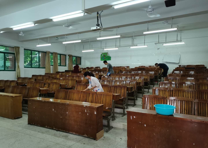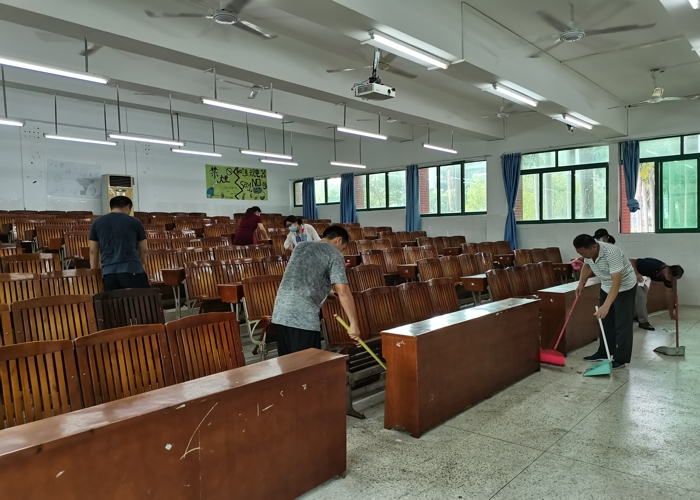 在劳动过程中,每一位党员教师发扬了“不怕脏、不怕累”的精神,既有明确分工,又有相互协助,认真地清理打扫课室卫生死角,为即将返校上课的学生提供干净整洁的上课学习环境。