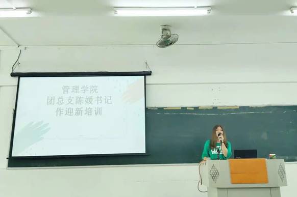 最后,管理学院团总支陈媛书记对迎新工作的注意事项和接待流程进行培训,她强调:迎新过程中要遵循“热情、周到、安全、高效”的总体要求,营造良好的迎新氛围,并提醒同学们在迎新工作期间要照顾自己的身体,多喝水以及在接待过程中要热情尽责对待师弟师妹们。