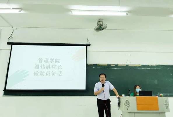 会议开始前管理学院温伟胜院长对此次动员活动致辞,他说到:希望同学们在迎新过程中体现出管院的风采和态度去迎新,让新一届的师弟师妹们感受到新学校的有爱氛围,把管院此次迎新工作做到最好,为新生展示我们的热情。