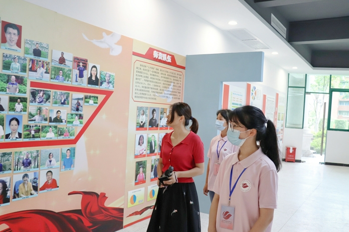 志愿者还带领家长们一起参观校史馆,里面展示了学校师资信息、学院介绍以及学校历年发展情况,使家长们能够进一步了解学校及学院信息。