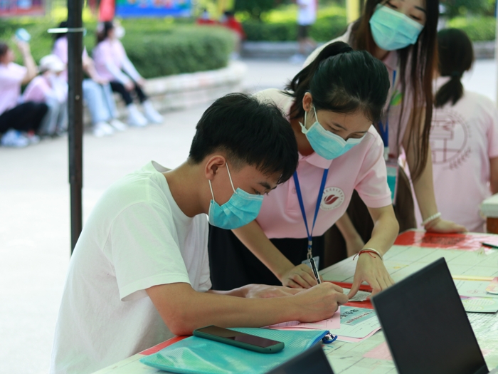 志愿者们细心指导新生报到登记,讲解相关注意事项,向他们发放一卡通、学生手册等入学资料,让他们顺利完成入学注册手续,随后,带领他们入住宿舍。