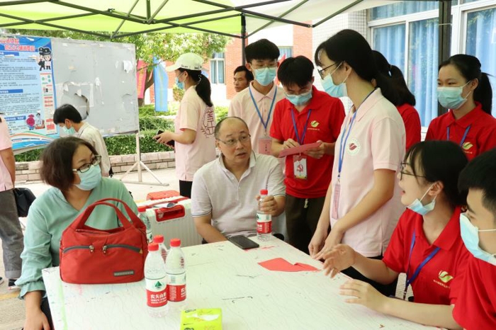 迎新过程中,会计学院李哲院长、学管副主任陈辉老师等到迎新现场指导志愿者工作,为他们提供意见及建议,让他们为新生和家长们提供更好的服务。