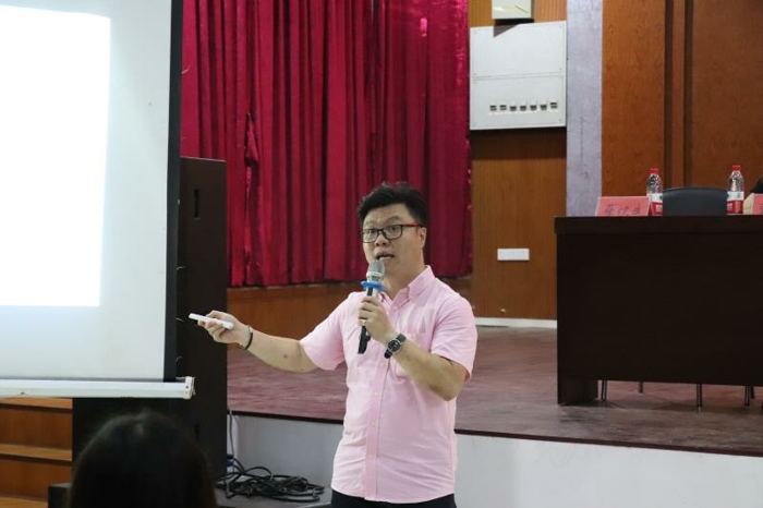 活动的第三项,由国际交流中心冼仲荣老师做国际合作项目的介绍。他介绍了项目的开设背景及就业方向,并向新生们讲解了各大学专升硕概况及相关知识。