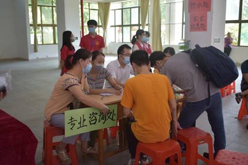 迎新现场,新生们在志愿者的带领下等待办理入学手续、填写资料、宿舍安排、缴费等一系列流程,安排新生到宿舍,发放校园一卡通。志愿者们积极主动、耐心答疑解惑,增加了新老生之间的交流,使新生及其家长充分感受到迎新工作人员的热情,让新生们尽快融入大学生活。