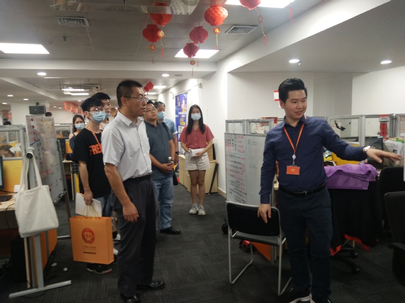 2020年9月24日,为进一步加强校企合作,深化产教融合,了解实习学生动态,中秋来临之际广州华立科技职业学院高尧来副校长、校企处处长钟文浩、国贸学院副院长隗波扬、国贸校外教学主任李景德等一行4人带着月饼、水果和全院师生的浓浓情意,到我院校企合作企业中国平安寿险广州电话销售中心慰问我院18级实习学生,并深入了解她们在校外的学习、工作情况。