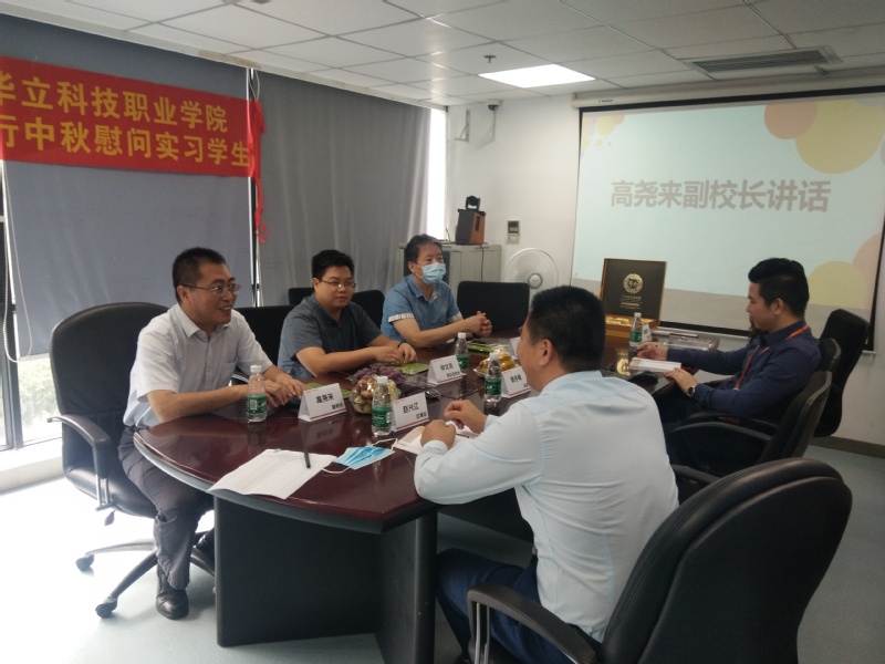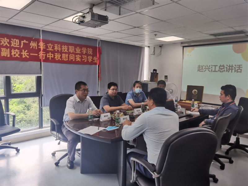 高尧来副校长叮嘱同学们要时刻注意安全,严格遵守公司纪律和学院实习规定,勉励大家在实习中要不怕苦、不怕累,勤勤恳恳地做好每项工作,充分展现华立学子良好的精神风貌,并把所学的知识运用到企业实际中,增强实践能力和就业能力。同时,高副校长就统筹协调、共同推进、服务需求、校企协同、合作育人等与赵总交换了意见。
