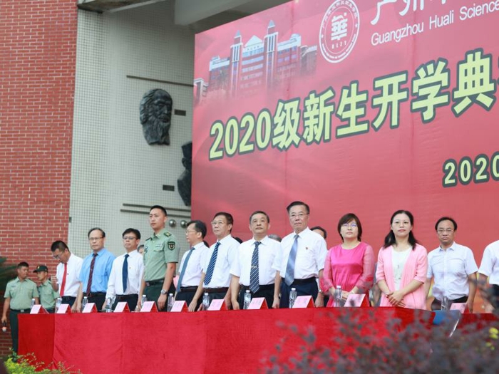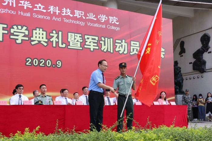 2020年9月23日上午,在综合楼前广场召开2020级新生开学典礼暨军训动员大会,到场领导及嘉宾有:广州华立投资有限公司总经理叶雅明、广东工业大学华立学院执行校长陈建平、广东省华立技师学院校长邹康、增城区人武部政委唐华上校、广州华立科技职业学院执行校长马龙海等学校领导,及相关职能部门、二级学院负责人等。大会由广州华立科技职业学院副校长高尧来主持。大会开始前,升国旗,全体师生起立,奏唱国歌。