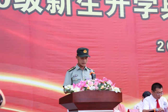 教官代表梁文财同志在发言中代表全体教官表明决心,他表示要严格遵守军训的有关要求和学校管理规定,言传身教,以身作则,积极开展健康向上的集体活动,圆满开展军训任务。希望同学们服从命令,听从指挥,顽强拼搏,坚决完成各项训练。