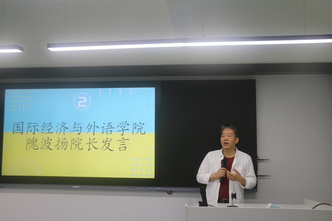 紧接着,是国贸学院副院长隗波扬老师发言,他讲到,大学生在校期间不但要夯实自己的专业知识,还要参加一些技能大赛,不断的学习,丰富大学生活增加阅历;