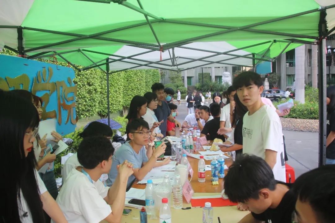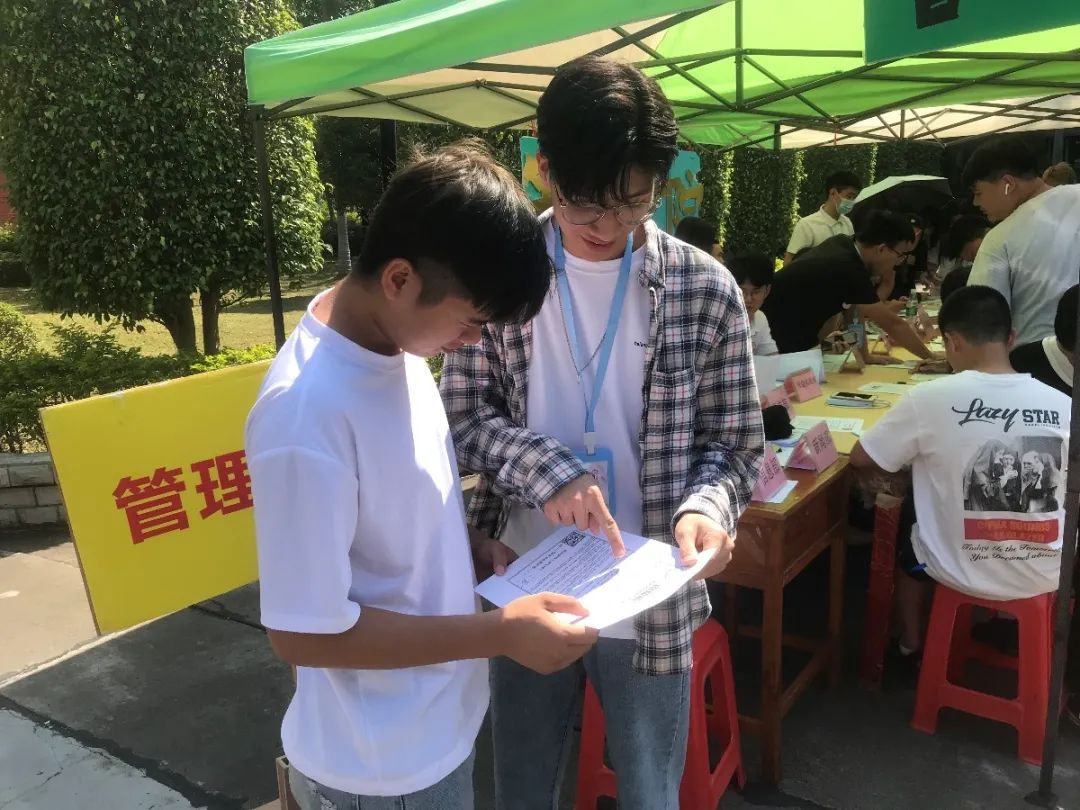 团总支学生会的干部们积极热情地迎接着前来摊位咨询的大一新生,并耐心的解答师弟师妹们的各种疑问,同时做好报名登记。