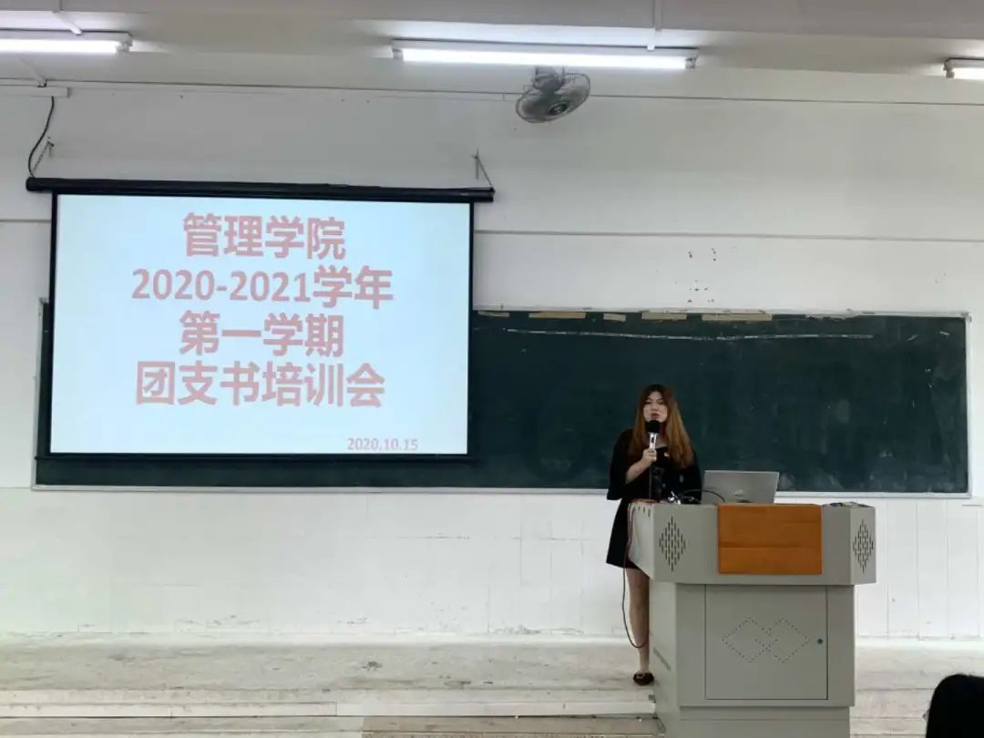 为加强我院基层团组织建设,提高团员干部的基础工作能力,管理学院于2020年10月15日中午12点30分在西区图书馆304教室开展了团支书培训会。出席人员有:管理学院团总支陈媛书记、团总支书记助理冯怡茵同学、团总支常务副书记黄锐鸿同学、团总支组织部以及各班级团支书