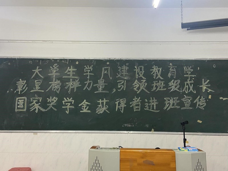 为激励同学们勤奋学习、积极上进,使德智体美得到全面发展,进一步促进学风和班风建设,邀请国家奖学金获奖者的进班宣讲示范引领作用,同时也为了加强对学生的感恩励志教育。我院于2020年10月29日早上7点15分在西一教学楼四楼各固定教室开展主题为:“大学生学风建设教育学,彰显榜样力量,引领班级成长,国家奖学金获得者进班宣传”主题活动。