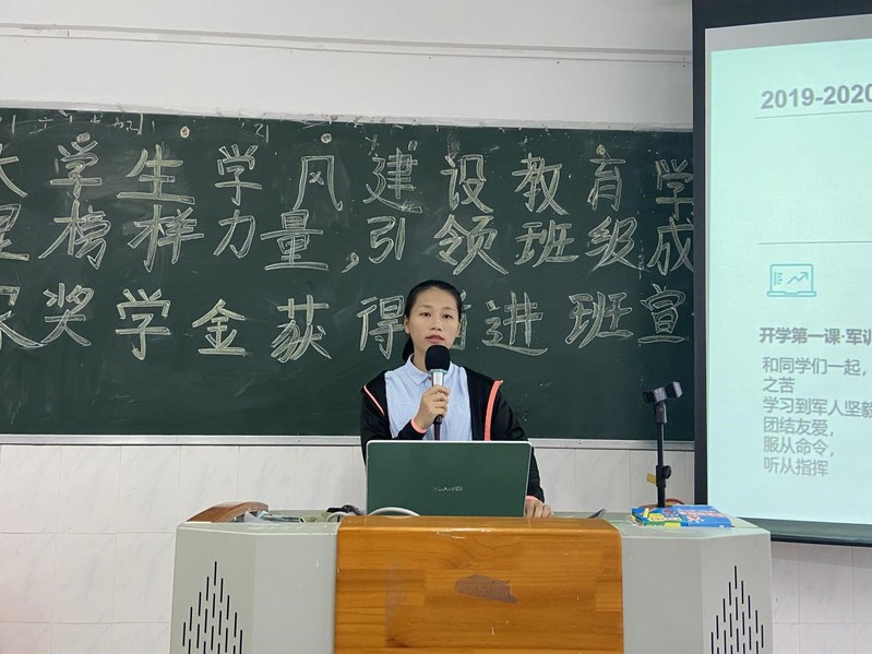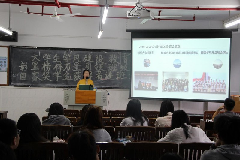 本次宣讲邀请了2019-2020学年荣获国家奖学金获得者的19级商英3班赖妮思同学进班宣讲先进典型事例。