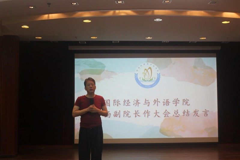 大会第九项议程,由国际经济与外语学院隗波扬副院长作大会总结发言。他提到新一届团总支学生会成员在今后的工作中要以身作则,团结合作,乐于助人,厚德载物,脚踏实地,使自己的大学生活更加丰富多彩。同时也期望新一届团总支学生会成员要处理好工作与学习的关系,保持热爱,奔赴理想,勇往直前。最后殷切期盼国贸学子凝聚一心,砥砺前行,描绘国贸美好蓝图!