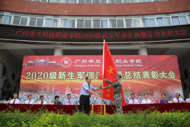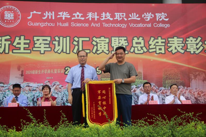 5.由教官代表将军训团旗交还给马龙海执行校长,并向承训部队赠送锦旗。到此宣布20级新生军训成果汇报表演暨总结表彰大会圆满结束。同时他希望同学们在今后的学习生活中,继续发扬军训精神,不断巩固训练成果让这种精神充满整个华立园。