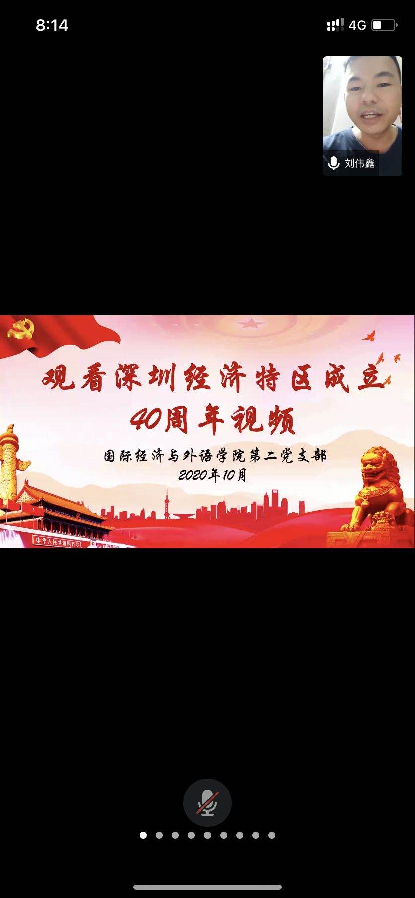 2020年10月28日,国贸学院党总支第二党支部在腾讯会议平台开展了“40年,我与深圳共成长”组织生活会。参加本次会议的有:国贸学院第二党支部书记刘伟鑫老师以及18级预备党员。