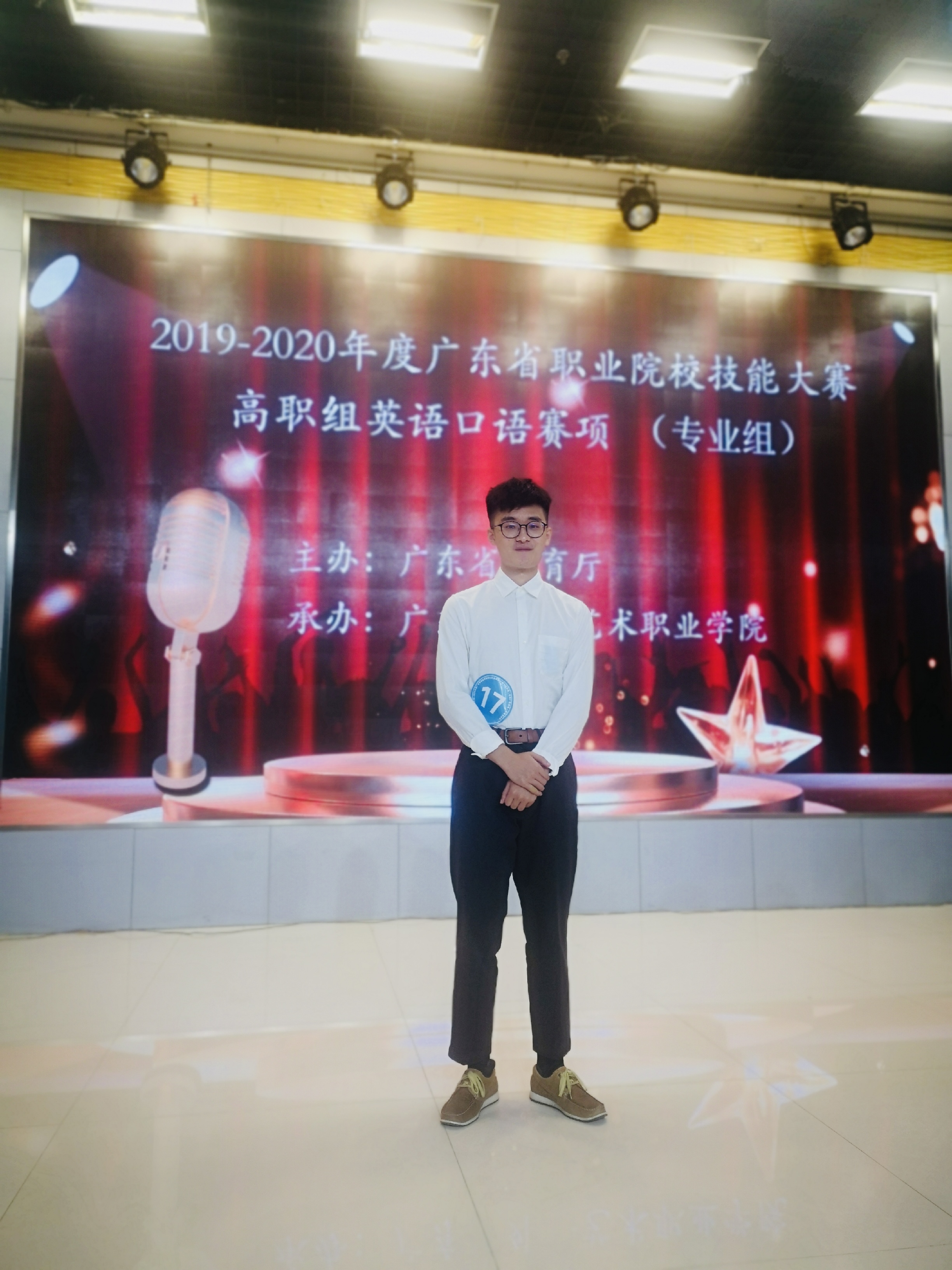 2020年10月24、25日,由广东省教育厅主办的“2019-2020年度广东省职业院校学生专业技能大赛英语口语赛项”在广东省外语艺术职业学院隆重举行。经过两天紧张激烈的比赛,我院2019级国际会计班陈颖思同学在陈茜老师的指导下,荣获非英语专业组二等奖。