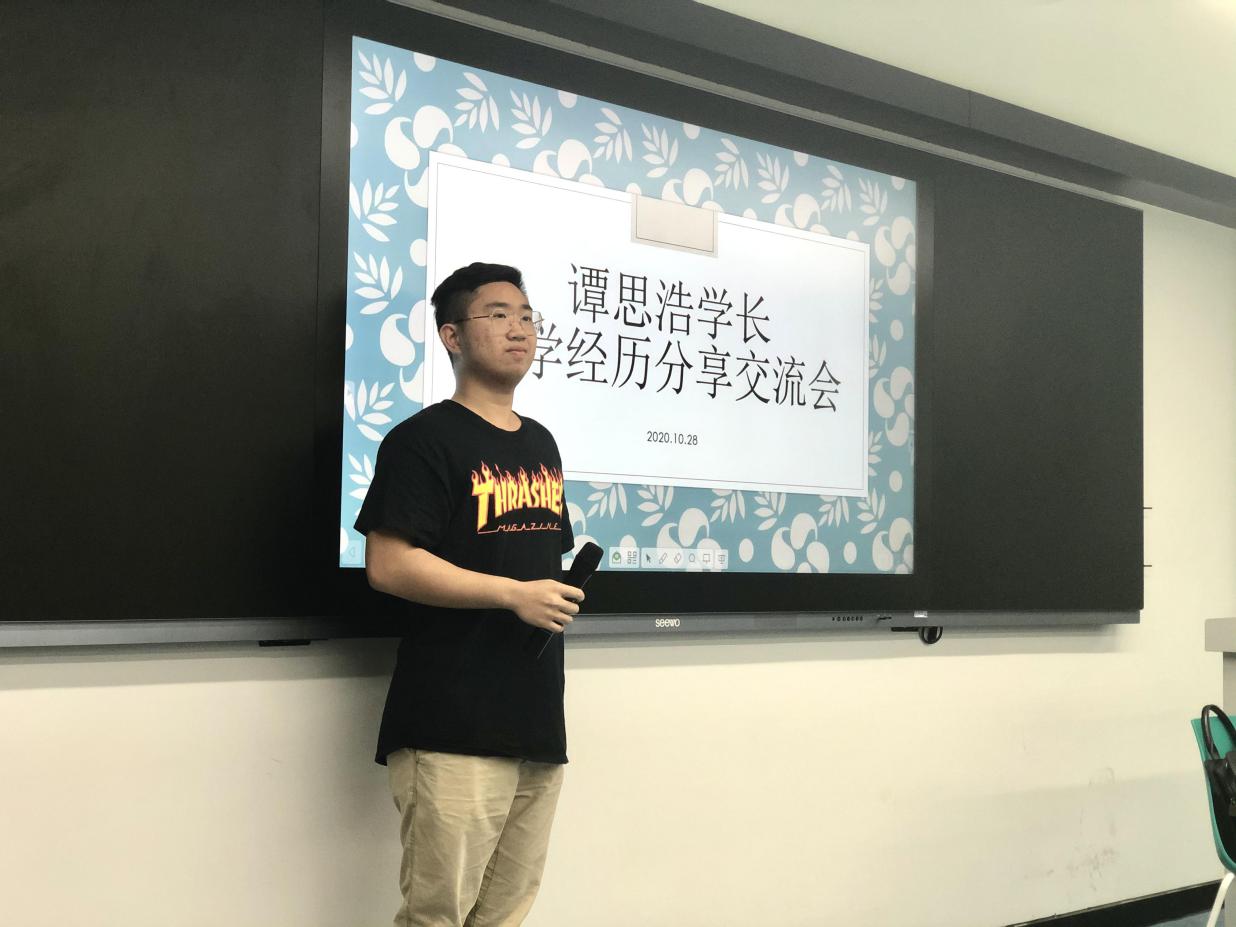 此次回到母校,谭思浩同学向2019级的同学们分享他的学习心得和留学经验,并耐心为2019级的同学们解答了留学的相关问题,现场气氛十分活跃。