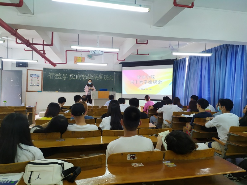 为进一步提高学院教学质量,提升学院日常教学管理能力,11月18日下午,管理学院在西三412教室召开了本学期期中教学学生座谈会。参加本次座谈会的领导和老师有温伟胜院长,刘军根副院长,教学主任汪蔚老师,学院督导梁国英老师、教务员以及2019级、2020级学生代表共50余人。本次座谈会由校内教学主任汪蔚老师主持。
