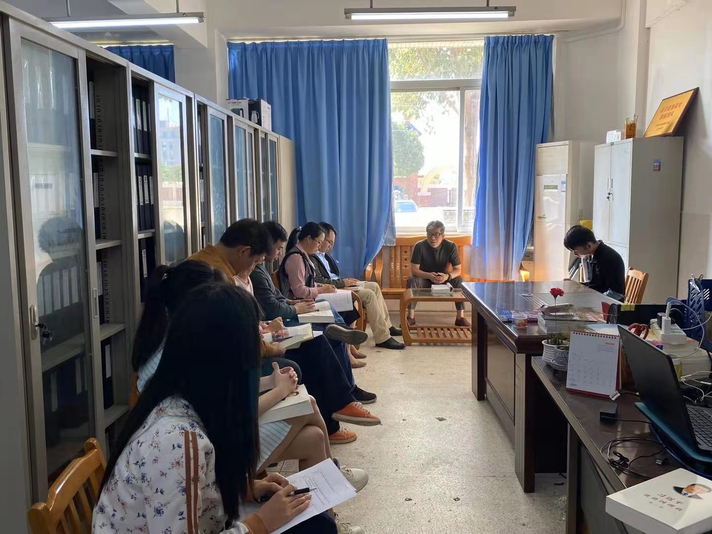 贯彻十九大精神,必须从自己做起,从本职工作做起,只有无愧于职责,无愧于使命,才无愧于党和人民,无愧于“十九大”的要求。全体党员老师都在十分认真的聆听。