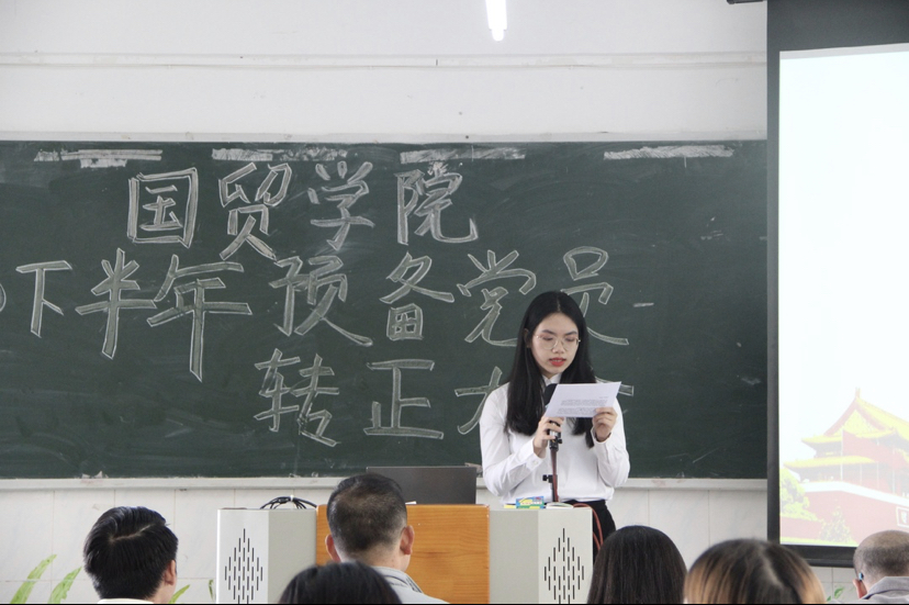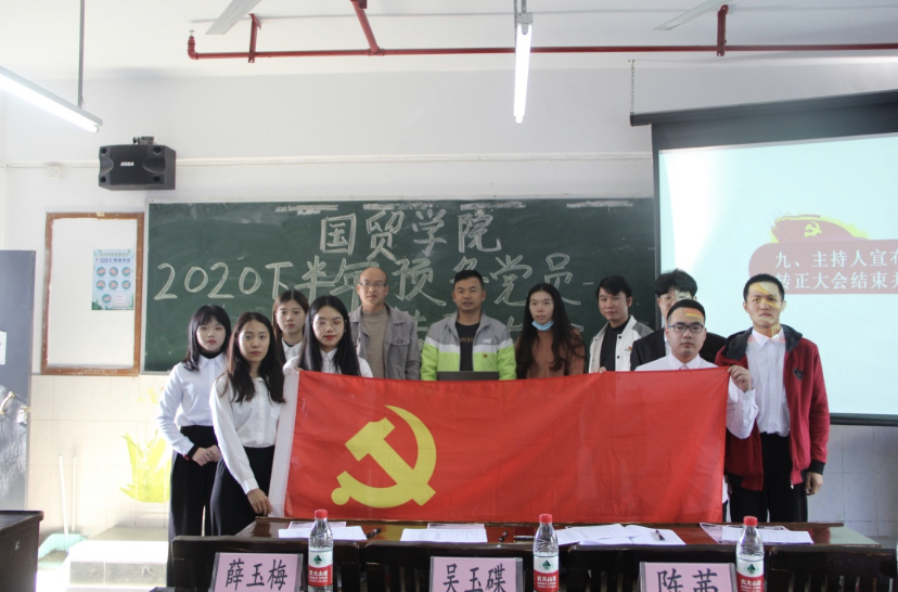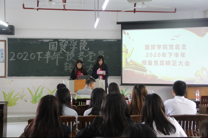 2020年12月8日下午14:00,国贸学院党总支在西一教学楼401召开了发展预备党员转正大会
