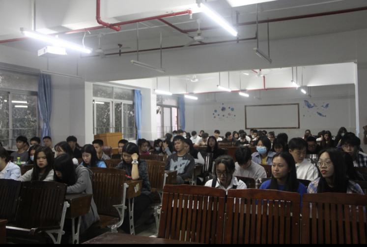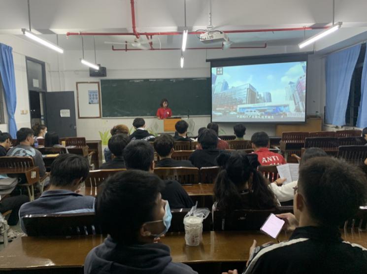 活动进行时,由党建小组各部门队长负责讲解和播放视频,同学们都在认真的聆听和观看视频。