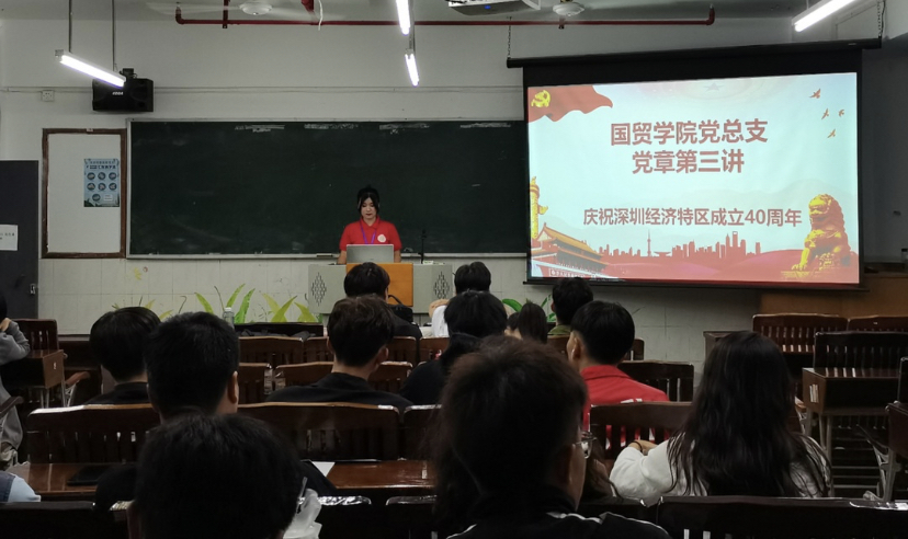 活动内容主要是为国贸学院各班同学讲解深圳经济特区成立40周年的发展史,并播放“40年,我与深圳共成长”的视频,旨在庆祝深圳经济特区成立40周年。