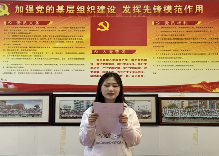 转正大会正式开始,陈辉同志向大家介绍了本次大会议程及介绍了陈嘉宜等六名预备党员同志的基本情况。陈嘉宜等六名预备党员同志以2018年12月7日经党支部大会讨论表决,并报学院党委统一接收为预备党员,至今预备期已满,向党组织递交转正申请。为保障党员的民主权利,确保新党员质量,经过党支部一年的培养考察,征求党内外群众意见,综合党员群众反映的问题及党总支调查核实,召开此次转正大会。